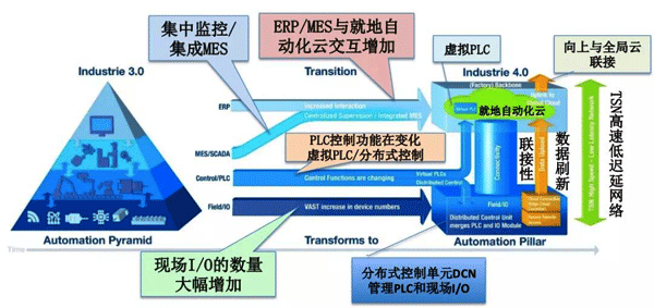 更值得關注的是PLC的體系架構正面臨著顛覆性的創新,下一代的PLC極大可能會是分布式控制節點(DCN)取代現場要求實時控制的PLC,處在本地云端的虛擬PLC承擔非實時要求或實時性要求不高的PLC功能,依靠強有力的OPC UA over TSN,構成開放的分布式的新型PLC系統(詳見附圖)。