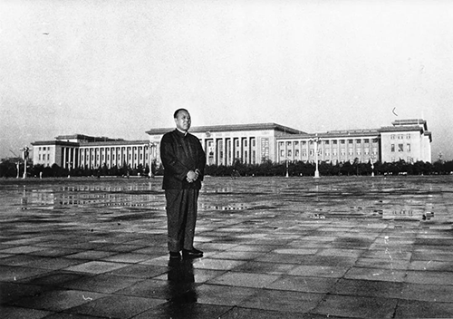 在這張照片里,他站在一堆臨記(臨時演員)旁邊,中間又有舞臺的感覺,像是擺拍。其實他是在指揮拍攝,準備叫:Camera(開機)!