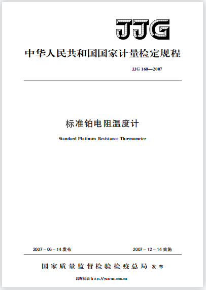 1、JJG 160-2007《標準鉑電阻溫度計計量檢定規程》適用于生產和檢定標準鉑電阻溫度計使用。