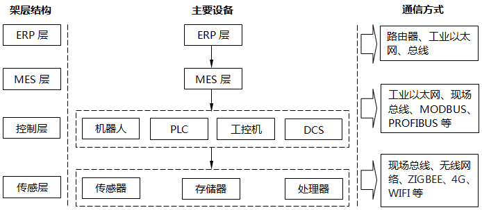 ①在ERP層和MES層:主要是以路由器、工業(yè)以太網(wǎng)和總線的方式互聯(lián),在目前的的網(wǎng)絡(luò)通訊上,沒有太多的變化。