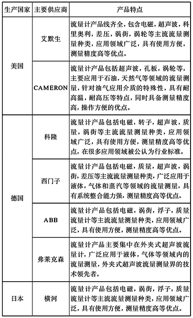 表5 國外流量計主要生產商