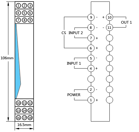 兩路輸入信號均為4-20mA,信號輸出控制方式為高電平/低電平控制,輸出一路4-20mA信號