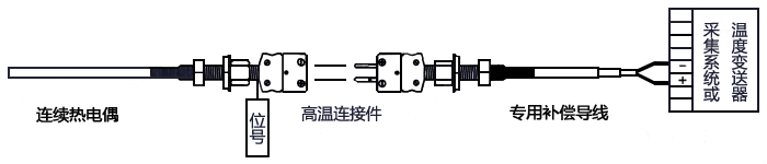 在訂購連續熱電偶時還需要配套訂購與連續熱電偶固定組件、壓板/填料、走線槽、接線盒、專用補償導線和專用溫度變送器/信號采集器。