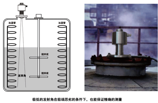 太赫茲調(diào)頻雷達(dá)物位計(jì)具有良好的穿透性能,針對(duì)高溫場(chǎng)合,可在天線前端加裝陶瓷或石英玻璃等隔熱附件,配合特殊的環(huán)境學(xué)習(xí)功能,對(duì)高溫液體進(jìn)行測(cè)量。