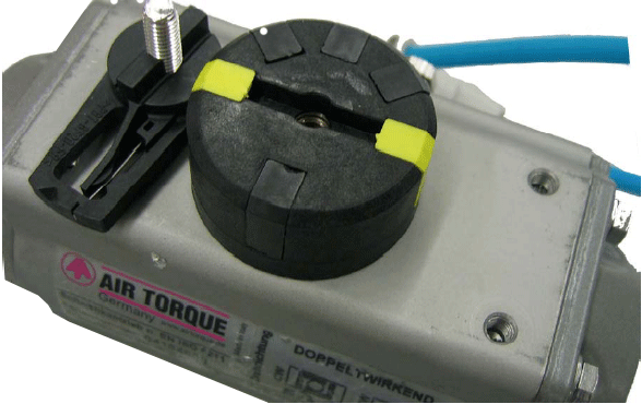 小心地把有安裝支架的定位器放到執行器上,使藕合輪的軸嵌入驅動器內