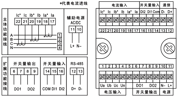 ◆電流和電壓輸入通道都使用了互感器,將儀表與電網進行了隔離,從而獲得良好的抗干擾性能