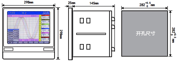 17、外形尺寸:298×298×145mm(寬×高×深);開孔尺寸:282×282mm(寬×高)