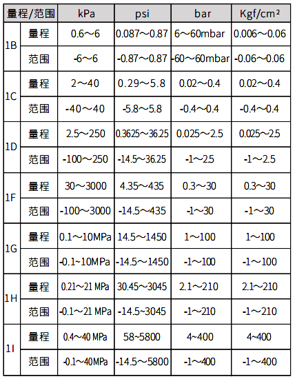 ②單晶硅壓力變送器量程[注1][注2]