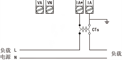 ①單相兩線系統,采用無無CT方式的接線圖