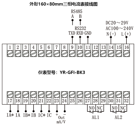 工作電源AC/DC100-240V,50/60Hz;DC20-29V(開關(guān)電源)