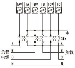 b、當電流信號以CT方式接入三相電流表時,請注意CT同名端。