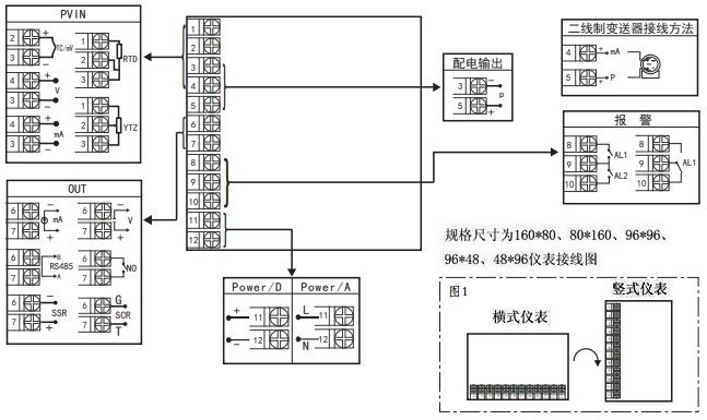 1、外形規(guī)格160×80、80×160、96×96、96×48和48×96mm傻瓜式模糊PID調(diào)節(jié)器接線圖