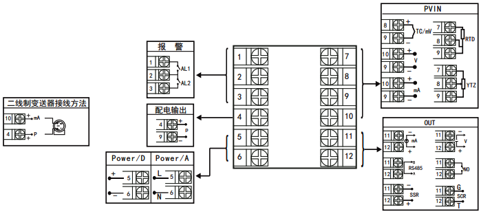 9、傻瓜式模糊PID調(diào)節(jié)器接線端子160×80、80×160、96×96、96×48、48×96mm外形相同,72×72和48×48mm不同,減少儀表接線不同帶給使用者的不便