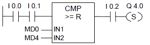 如果比較結果為“真”,則函數的RLO為“1”。如果以串聯方式使用該框,則使用“與”運算將其鏈接至整個梯級程序段的RLO;如果以并聯方式使用該框,則使用“或”運算將其鏈接至整個梯級程序段的RLO。