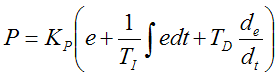 公式中:P為控制器的輸出信號;e為偏差信號;KP、TI、TD分別是控制器的比例增益、積分時間和微分時間。