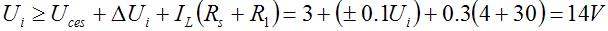 當輸入電壓最低,而輸出電壓最高時,調整管兩端電壓Uce最低,如用晶體管作放大器,則工作電壓Uce必須高于該管的飽和電壓Uces。,放大器才能正常工作。從手冊知晶體管的Uces值均小于3V。這時可用下式來計算: