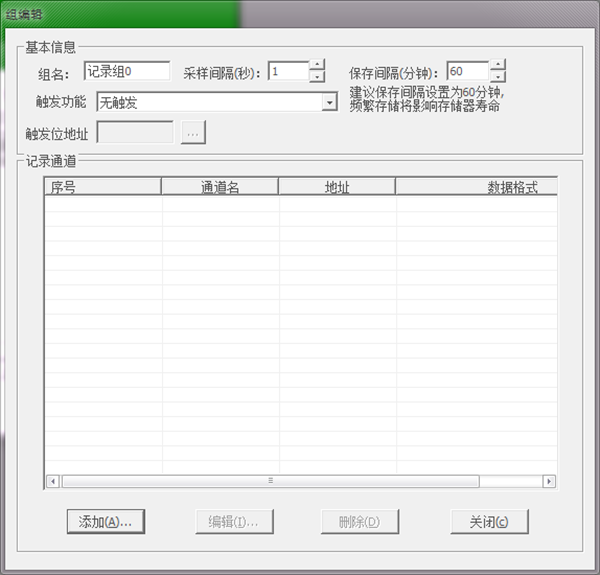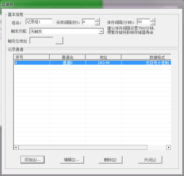 選擇SWP-HMI人機界面菜單上的“設置”----“數據記錄區”,打開如圖: