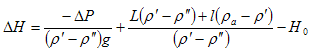 即:ΔP=ΔP0-gΔH(ρ′-ρ″)-------------------------------------------------------------------(4)