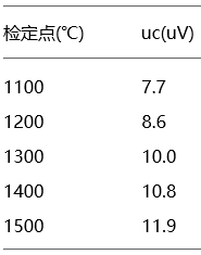 輸入量E標證(t)的標準不確定度來源于分度一等標準鉑銠30-鉑銠6熱電偶,分度結果的不確定度,由相關資料可知,換算成熱電勢值見表4: