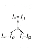 對于一相式、三相Y形和兩相V形[圖2(a)、圖2(b)、圖2(c)]:在正常運行與相間短路時,Ij=I2,故Kjx=1。