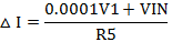 VIN在輸入電流為20mA的條件下為2V,V4的值根據(jù)負載的變化而變化,負載越大V4值越大,在輸出20mA的條件下負載為N×R5,產(chǎn)生的誤差為(N+1)×0.05%。根據(jù)需求負載的最大值為750Ω,故理論計算的誤差最大值為0.425%。不滿足精度要求。更換精度為0.01%的電阻條件下,由于
