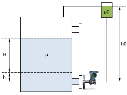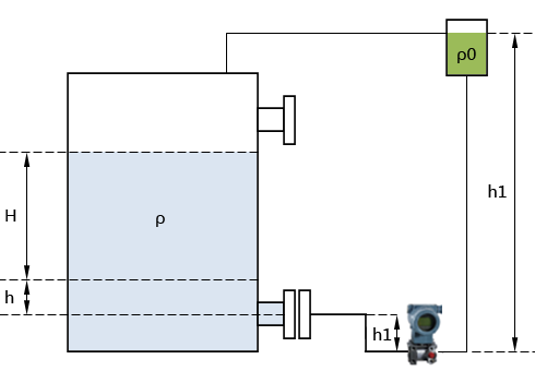 b、在高溫下,如圖2b,在變送器與取壓管中間加裝隔離罐,以避免高溫對變送器的損壞。注意,這時所選用的隔離液為在此溫度下不沸騰的介質。變送器的量程不變,零點遷移量為:L0=h1×ρ1+h×ρ-h0×ρ0。