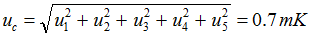 由于各標準不確定度分量彼此不相關,故合成標準不確定度
