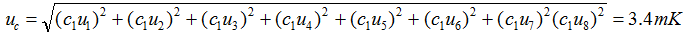 確定擴展不確定度U=kuc,取k=2,U=1.4mK。