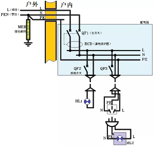 1、在戶外,配電系統引來一條火線(相線)和零線。其中零線做了重復接地,然后分開為中心線N和地線PE,隨同相線L一同入戶。至于火線到底是三相中的哪一條,與居家的配電和用電毫無關系,任意一條都可以。 從零線重復接地點開始往后,包括入戶之后的系統,零線PEN就不存在了?。。?/span>