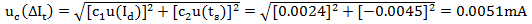 由于以下分析中Id的標(biāo)準(zhǔn)不確定度分量和ts的標(biāo)準(zhǔn)不確定度分量之間相互獨(dú)立,故: