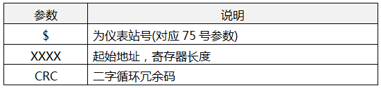 計(jì)算機(jī)→FC6000(4-8bytes):$,03H,XXXX,CRC