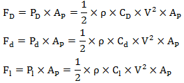 以設計為目的時,取CD=1.4;Cd=0.1;Cl=1.0,Fβ代表FD(N)、Fd(N)和Fl(N)。