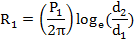 這里:P1為絕緣材料熱阻率(℃.cm/W),聚氯乙烯取600,聚乙烯取450;d1為導體外徑;d2為絕緣外徑