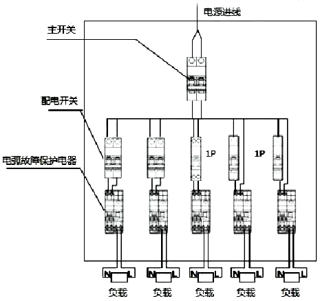 電弧故障保護器應設置在末端配電箱的進線開關下側,其額定電流值應與進線回路保護開關一致;