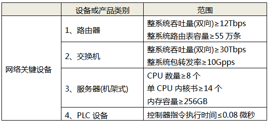目前,根據四部門聯合發布的公告《網絡關鍵設備和網絡安全專用產品目錄(第一批)》,第一批網絡關鍵設備包括了性能較高的路由器、交換機、服務器和PLC設備,具體設備類型及范圍如下表: