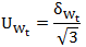 以式(5)計算得到的δWt作為數表準確度對確定Rt(即Wt)引入的不確定度來源。估計其分布來自公式(1)中的第一項標準不確定度分量,如作均勻分布對待,則