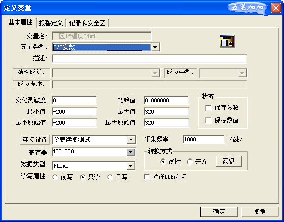 如果需要保存,可以把狀態選中。對于保存數據,不在本討論中,請自行查看組態王的數據保存。