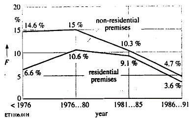 在比較不同安裝時間的RCD故障率時,可靠性應慎重對待。事實上,安裝時間越長,RCD故障就越多,見圖1。僅1989年安裝在非住宅場所并于1990年測試的RCD故障率為3.2%。