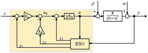 上述被控對象模型代表了工業(yè)過程中一大類自平衡對象,雖然忽略了被控對象可能具有的震蕩特性、非最小相位特性,但由于ADRC的特點,可以將未精確建模的信息通過總和擾動進行估計抵消。實際上以此高階模型作為被控對象推導出的參數(shù)整定公式可以適用于更大范圍。