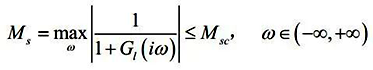由于被控過程本身具有的不確定性,以及建模過程的不確定性,可以自然地想到利用控制系統(tǒng)的魯棒性作為參數(shù)整定推導的約束性調(diào)節(jié)。在該研究中,選擇容易量化的最大靈敏度Ms作為魯棒性指標。根據(jù)的定義,最大靈敏度約束可表示為: