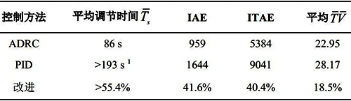 ADRC參數(shù)整定公式首先在多個仿真算例進行了驗證,包括延遲對象、非最小相位對象、震蕩環(huán)節(jié)的對象,甚至是100階的高階對象。之后被用于水箱水位控制的實驗中,最終被應用于實際運行的火電機組中,包括二次風、過熱汽溫等回路。圖3、圖4所示為循環(huán)流化床機組二次風回路的應用效果,表中為應用指標對比。實際使用該整定公式非常容易,初次計算的ADRC參數(shù)就可以保證投切后系統(tǒng)穩(wěn)定過渡,無震蕩發(fā)散,并且效果比PID的控制效果好很多。