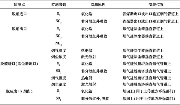表1 CEMS的監(jiān)測點設(shè)置和監(jiān)測內(nèi)容