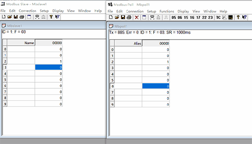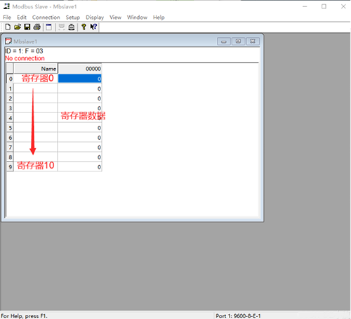 ID=1表示模擬的Modbus子設(shè)備的設(shè)備地址,圖中地址為1;