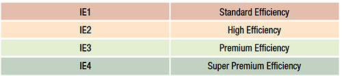 2014年國際電工委員會(huì)正式發(fā)布了IEC60034-30-1 Efficiency classes of line operated AC motors(IE code),該標(biāo)準(zhǔn)定義了電動(dòng)機(jī)的效率等級(jí),總共分為5個(gè)等級(jí):