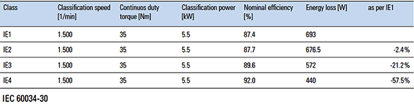 例如5.5kW的電動(dòng)機(jī),IE1電機(jī)的效率只有87.4%,而IE3電機(jī)的效率為89.6%,且損耗相對(duì)于IE2下降了21.2%,IE4電機(jī)的效率達(dá)到了92%,損耗更是下降了57.5%,運(yùn)行效率和節(jié)能效果明顯。