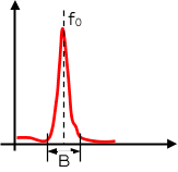 與寬帶信號(hào)相對(duì)應(yīng)的是窄(頻)帶信號(hào),假設(shè)信號(hào)的頻率寬度為B,中心頻率為f0,如圖9所示。通常認(rèn)為窄帶信號(hào)滿足以下要求:信號(hào)的頻率寬度B遠(yuǎn)小于中心頻率f0,通常要求B/f0<0.1。例如,單頻信號(hào)屬于窄帶信號(hào),以及我們大多數(shù)情況下測(cè)量的信號(hào)只包含若干個(gè)單頻成分,那么這也是窄帶信號(hào),對(duì)應(yīng)的頻譜稱為窄帶譜(用若干譜線表示)。如使用步進(jìn)正弦進(jìn)行激勵(lì)時(shí),則這種激勵(lì)技術(shù)是一種窄帶激勵(lì)技術(shù),因?yàn)槊恳粫r(shí)刻,激勵(lì)信號(hào)只有一個(gè)單頻成分。
