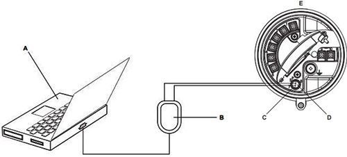 如果變送器位于危險區(qū)域,請勿使用服務(wù)端口連接。服務(wù)端口連接需要打開接線腔室,而在接通了變送器電源的情況下打開接線腔體可能會導(dǎo)致爆炸。要在危險環(huán)境中連接變送器,請采用無需取下變送器外殼蓋子的連接方法。