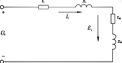 由此可以看出,變壓器空載狀態下,相當于兩個阻抗值的串聯,一個是漏阻抗,另一個是勵磁阻抗。如下圖:
