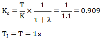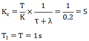 如果選擇λ=T=1s,根據Lambda整定方法得到的PID參數如下: