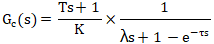 閉環控制不能消除純滯后時間,所以設閉環傳遞函數仍有不變的純滯后時間。閉環時間常數λ表示設定值階躍變化時過程的響應速度。期望的閉環傳遞函數為公式19: